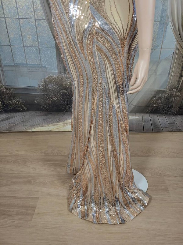 Stralend in Licht Goud! Maak kennis met de #ElegantePailletten #EenSchouder #ZeemeerminJurk, dé perfecte keuze voor #Feesten en #FormeleEvenementen. Met een afslankend ontwerp en hoge taille benadrukt deze jurk prachtig je vrouwelijke vormen. De vloerlange lengte en asymmetrische zoom geven een verfijnde en trendy uitstraling.De glinsterende pailletten voegen een vleugje glamour toe, ideaal voor galas en speciale gelegenheden. Gemaakt van hoogwaardige materialen, biedt deze jurk zowel stijl als comfort. Een absolute must-have voor elke modebewuste vrouw die indruk wil maken!
