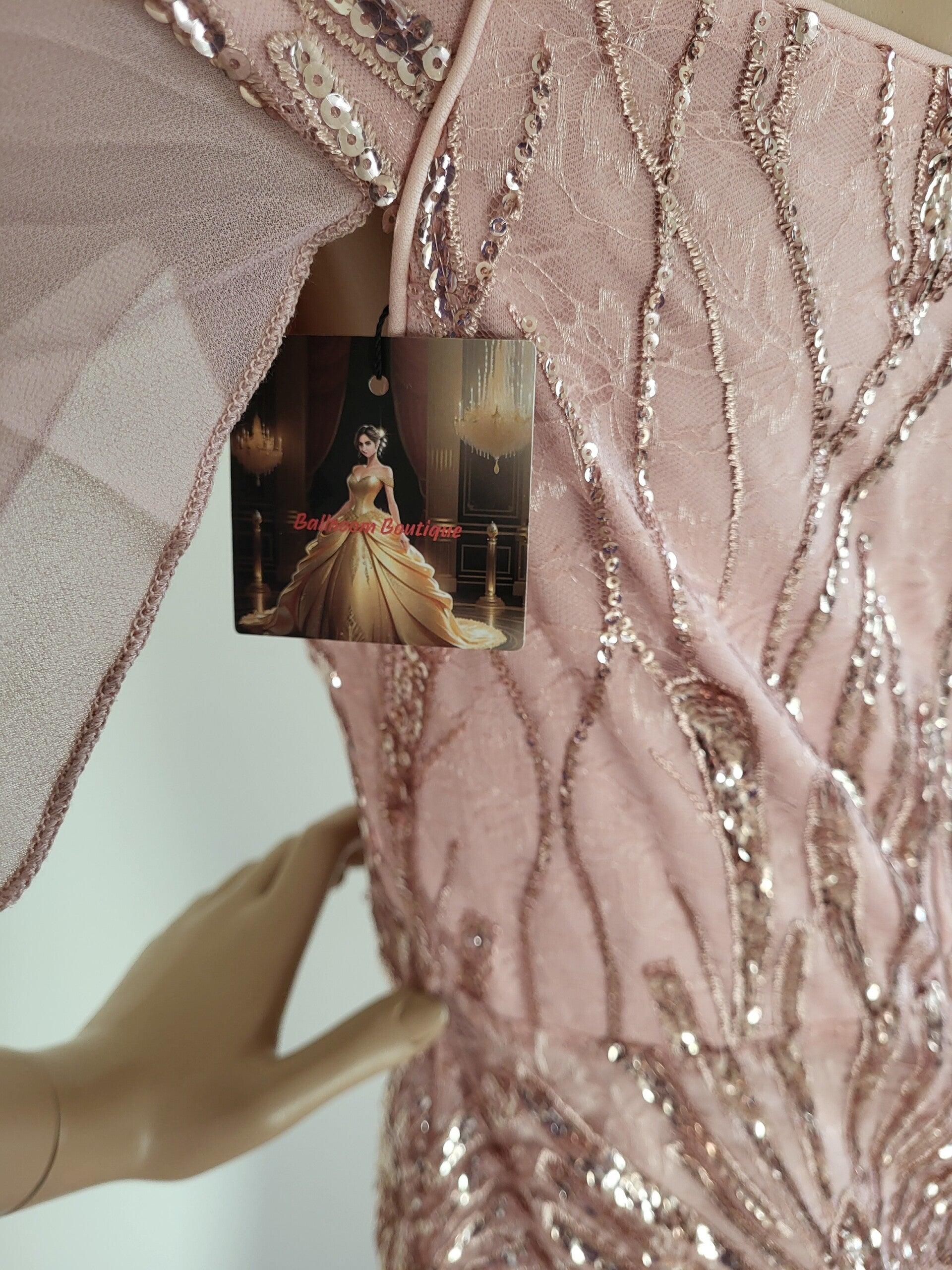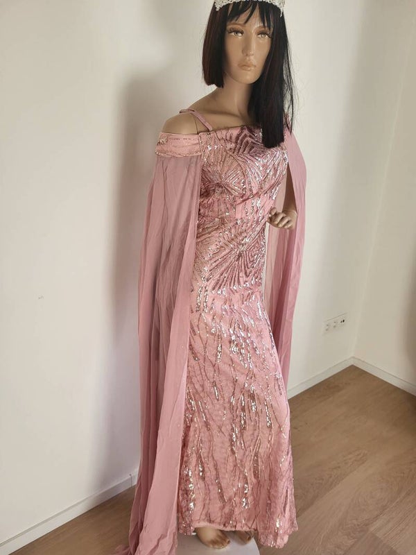 - **Kleur**: De zachte lichtroze tint maakt de jurk romantisch en veelzijdig, perfect voor elke gelegenheid. Deze jurk is de perfecte keuze voor iedereen die elegantie en glamour wil uitstralen. Maak je klaar om te stralen op elk feest!